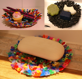 Vos enfants ont encore des perles de rocaille ? Prenez-en quelques-unes et mélangez-les à de la colle. Vous pouvez utiliser l’envers d’un saladier pour réaliser une forme incurvée. Réalisez des petites tiges de perles de rocaille encollées et collez-les dans le fond de votre porte-savon pour lui permettre de sécher sans que l’eau ne le touche.