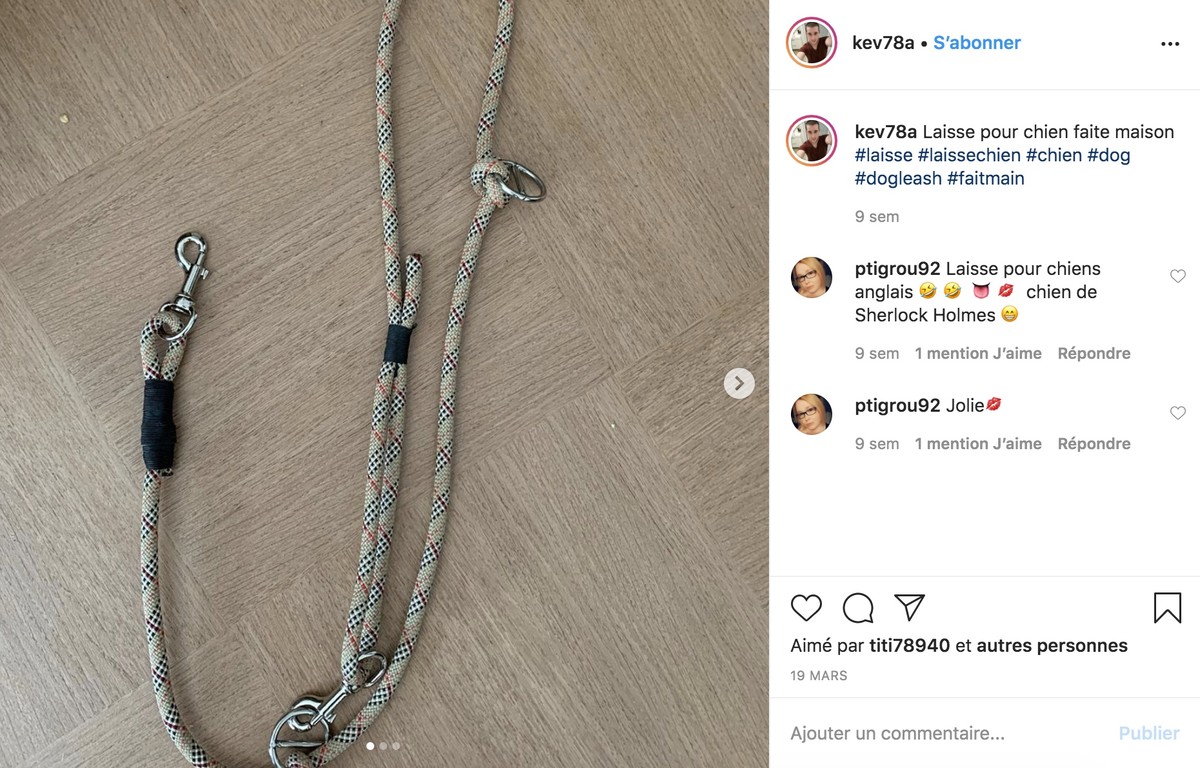 Pour vous inspirer, retrouvez ce beau modèle de laisse DIY sur le compte instagram de kev78a.