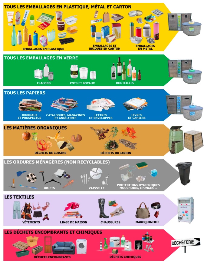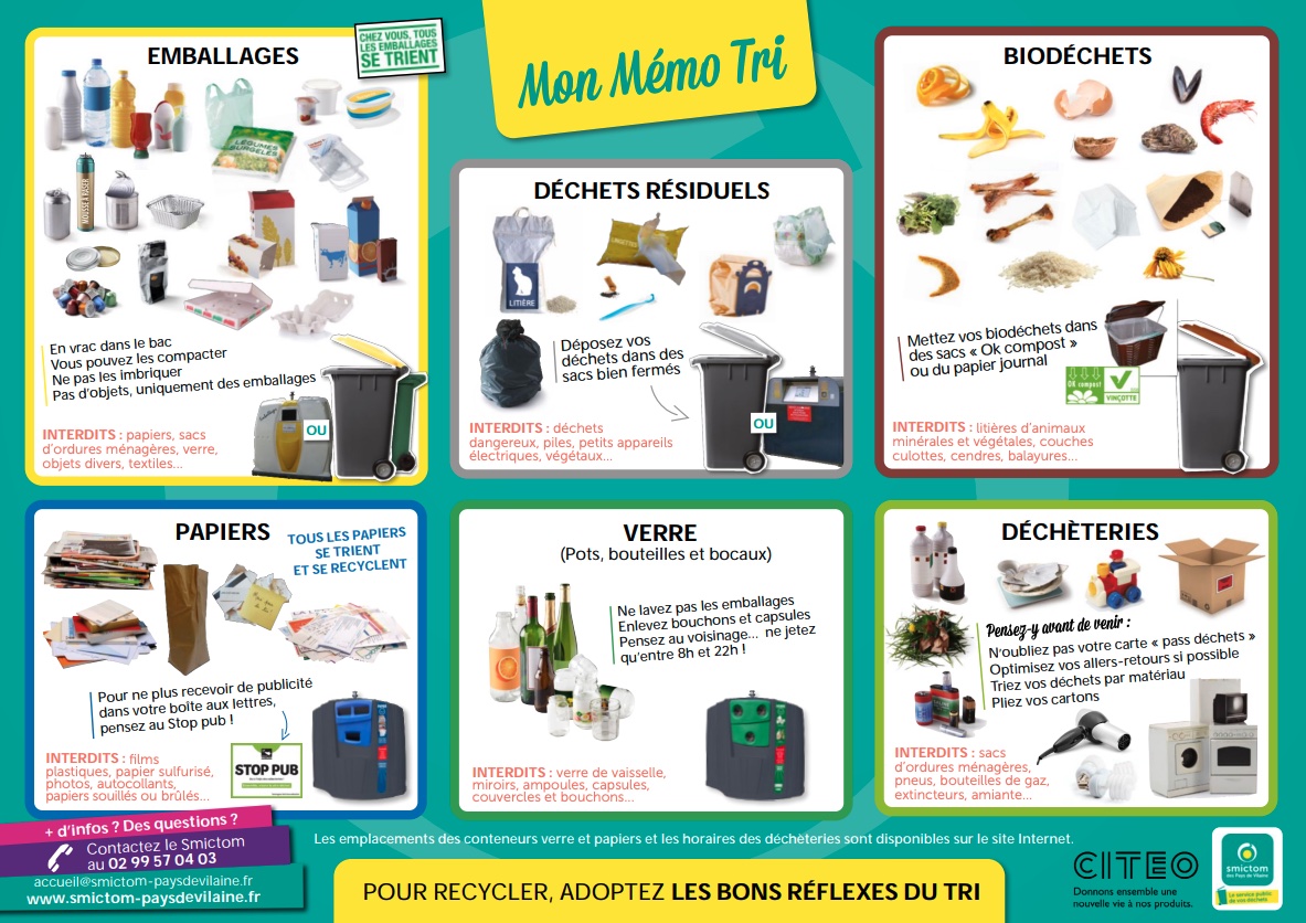 - Sur le couvercle des bacs eux-mêmes : une info par bac, pour éviter les erreurs