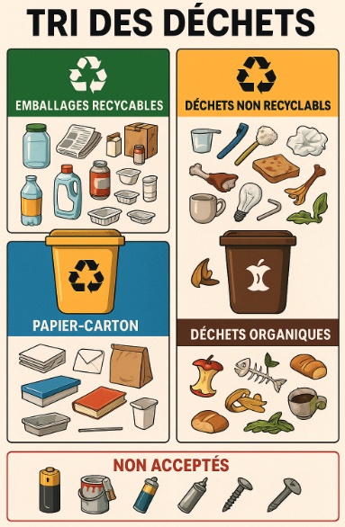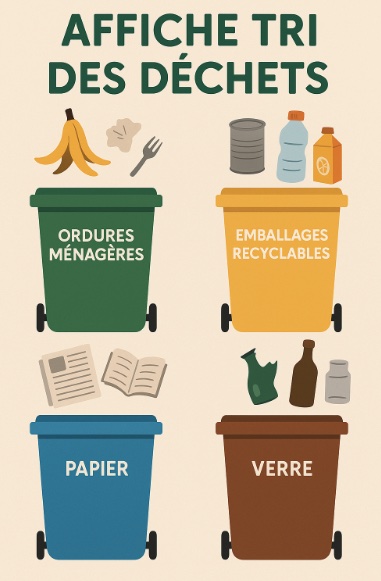 Le tri des déchets ne devrait pas être une corvée, ni réservé aux adultes. En rendant les consignes claires, colorées et ludiques, l’affiche devient un outil d’apprentissage formidable, notamment pour les enfants. On peut même y associer un jeu éducatif (comme repérer les erreurs ou faire un concours de tri !), pour en faire un moment d’apprentissage collectif.