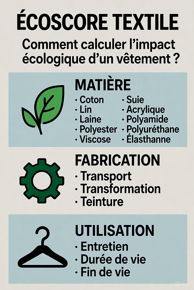 L'écoscore textile est un outil simple pour évaluer l'impact environnemental des vêtements. Introduit par la loi Climat et Résilience en France, il devient opérationnel depuis le 1er octobre 2025.